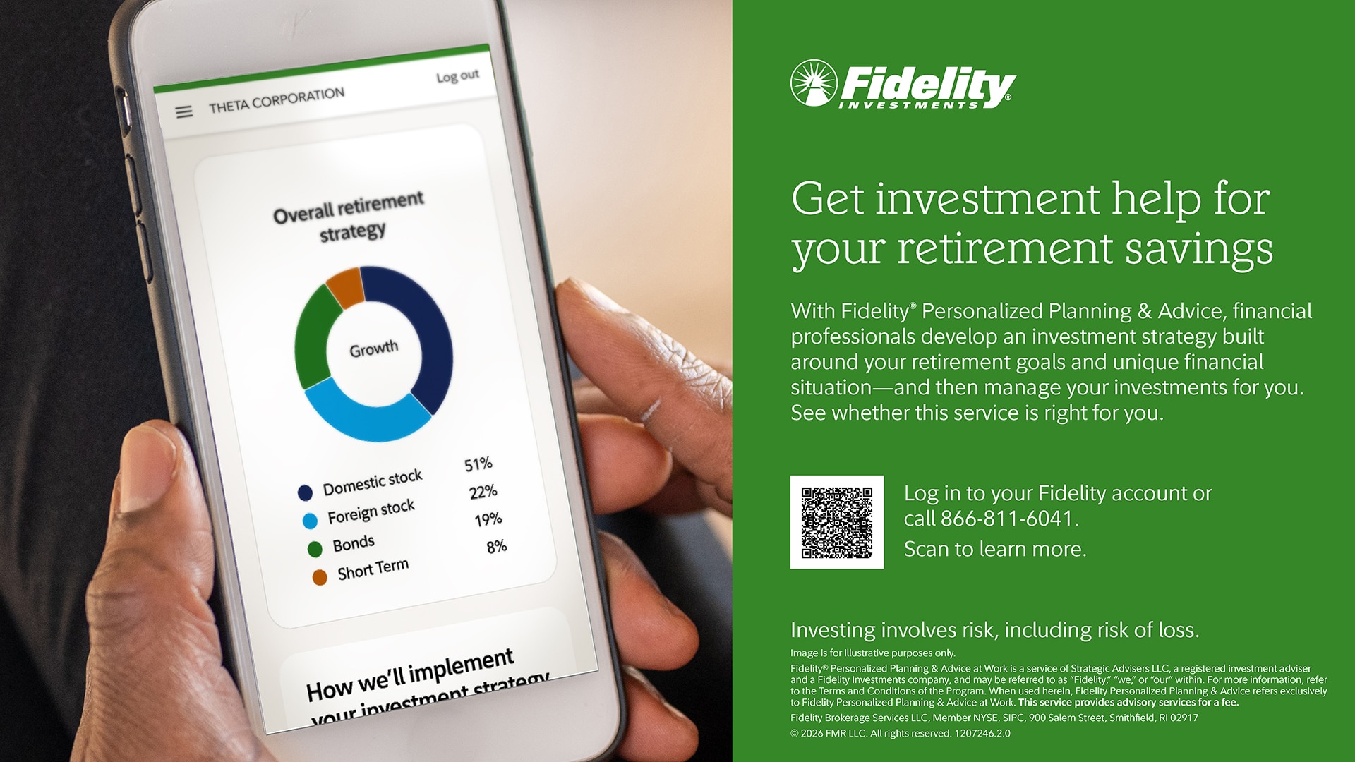 The Fidelity® Personalized Planning & Advice provides your employees with a professionally managed retirement strategy based on their retirement goal, preferences, and unique financial situation.